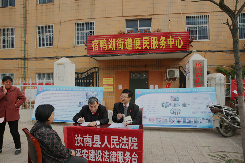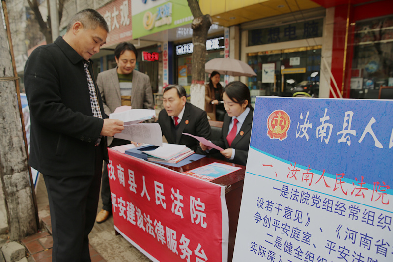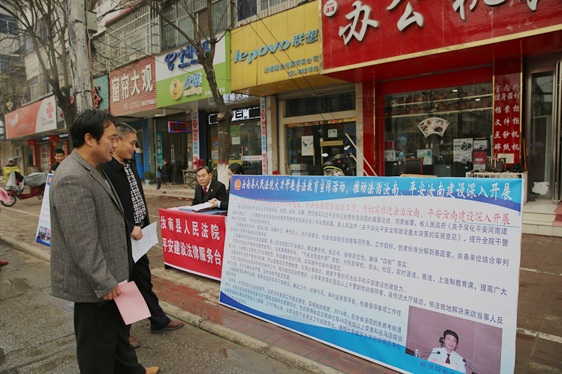 为推动“法治汝南、平安汝南”平安创建工作的深入开展,汝南法院近日组织20名干警分别在宿鸭湖街道便民服务中心、汝南古城大道开展普法教育进社区活动,设置法律服务台,发放宣传单,为群众提供婚姻家庭、民间借贷、劳动合同等方面的法律咨询,耐心、详细地向前来咨询的群众答疑解惑,受到了广大群众的欢迎,营造浓厚、融洽的和谐氛围以及良好的平安建设宣传教育氛围,同时也提高广大群众对平安建设的知晓率、参与率、满意率。