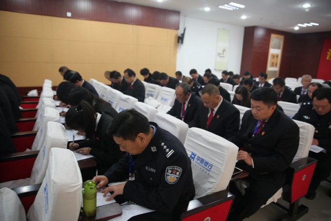 汝南县法院认真落实中央、省、市、县委和上级法院关于学习宣传贯彻落实党的十九大精神的部署要求,始终把学习宣传贯彻落实党的十九大精神作为当前和今后一个时期重大政治任务来抓。为了进一步检验全院干警是否有效学习贯彻党的十九大精神,进一步深化党的十九大精神学习,严明党员干部纪律、规范党员干部行为,12月4日上午,汝南县法院组织全体干警开展了党的十九大精神和新党章知识竞赛活动。党组书记、院长姚强以普通党员的身份,带领全体党员干警参加了知识测试。达到了以考促学、学以致用、学以促廉的目的。
